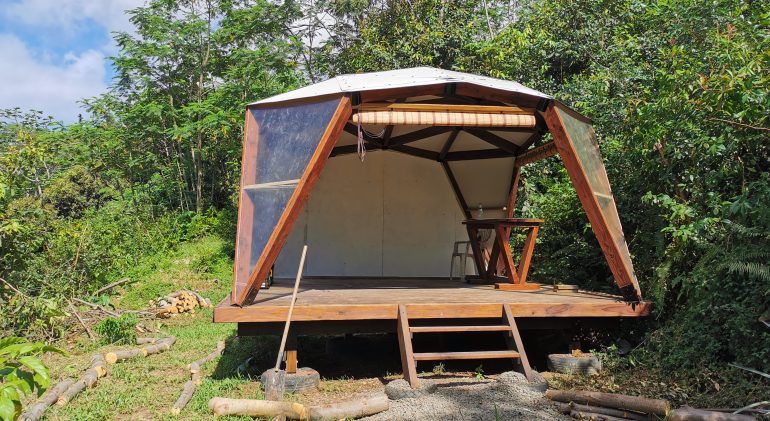 Niché dans la verdure, ce fare pote’e privatisé offre un espace intime et apaisant, idéal pour les activités de bien-être.